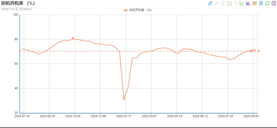 开工率方面,PTA均匀开工率正在74.95%,较上周上涨5.47%;聚酯方面,聚酯均匀负荷为91.44%,较上周上涨0.11%。秋冬面料订单有所转机,墟市打样处境优越,织制工场的负荷与上周比拟有所回升,正在71.6%。