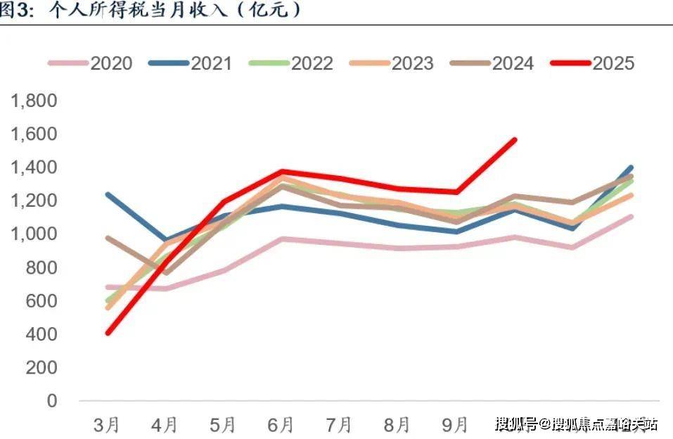 你们可能看下方的图片,整体2025年的个税险些是每个月都是同比增加的状况。